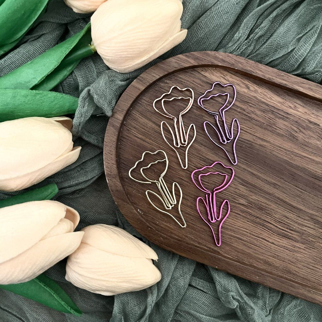 Obsah balení: 4ks kancelářských sponek ve tvaru tulipánu.