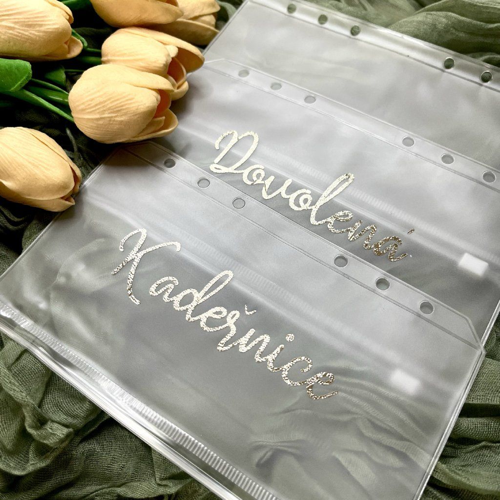 Každá obálka může vlastnit svůj název, který je vyroben ze stejné fólie jako potisk na deskách diáře – vše tak krásně ladí dohromady. Stačí si tedy zvolit název obálky a vytvoříte si systém přesně podle sebe.