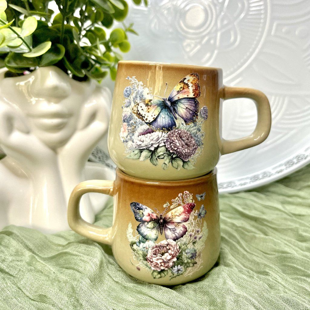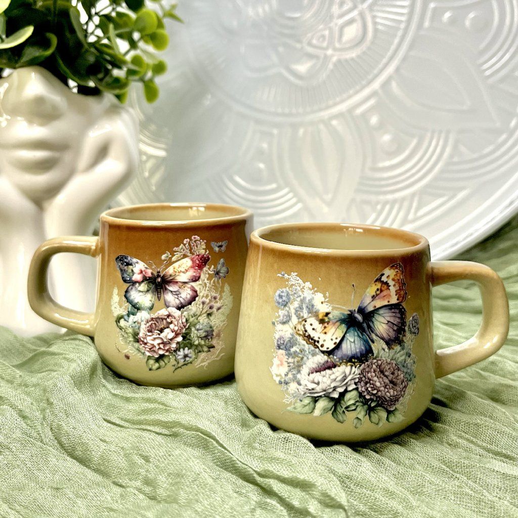 Nechte se okouzlit něžnou krásou přírody. Sada mini hrnečků Butterfly přináší jemný motiv barevných motýlů a květin, který promění každou kávovou nebo čajovou chvilku v malý rituál plný klidu a elegance. Hrnečky v hřejivém přírodním odstínu působí romanticky i stylově zároveň. Díky své menší velikosti jsou ideální na espresso, cappuccino nebo malý šálek čaje. Perfektně se hodí do útulné kuchyně, na venkovský stůl i jako milý dárek pro někoho, kdo miluje krásné detaily.