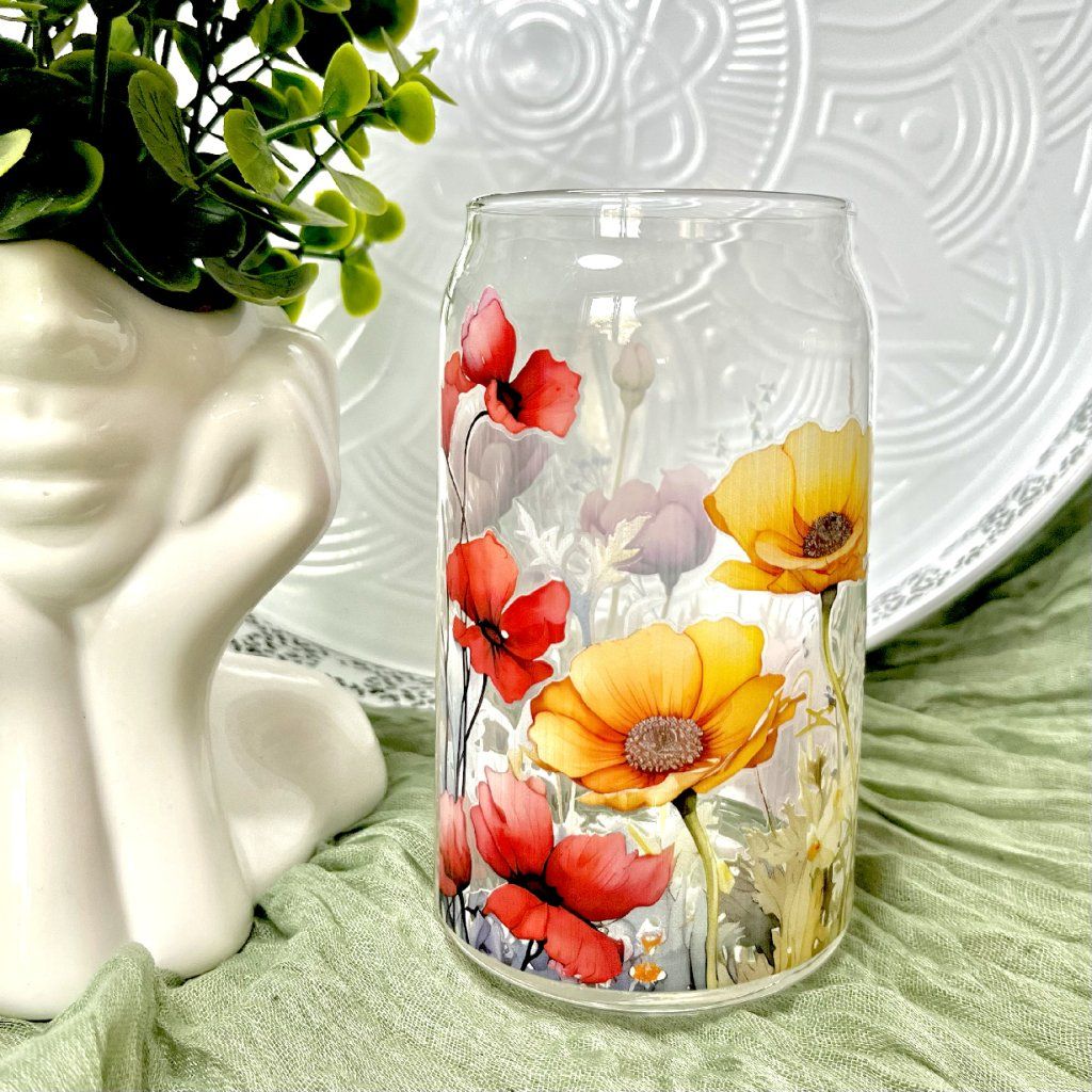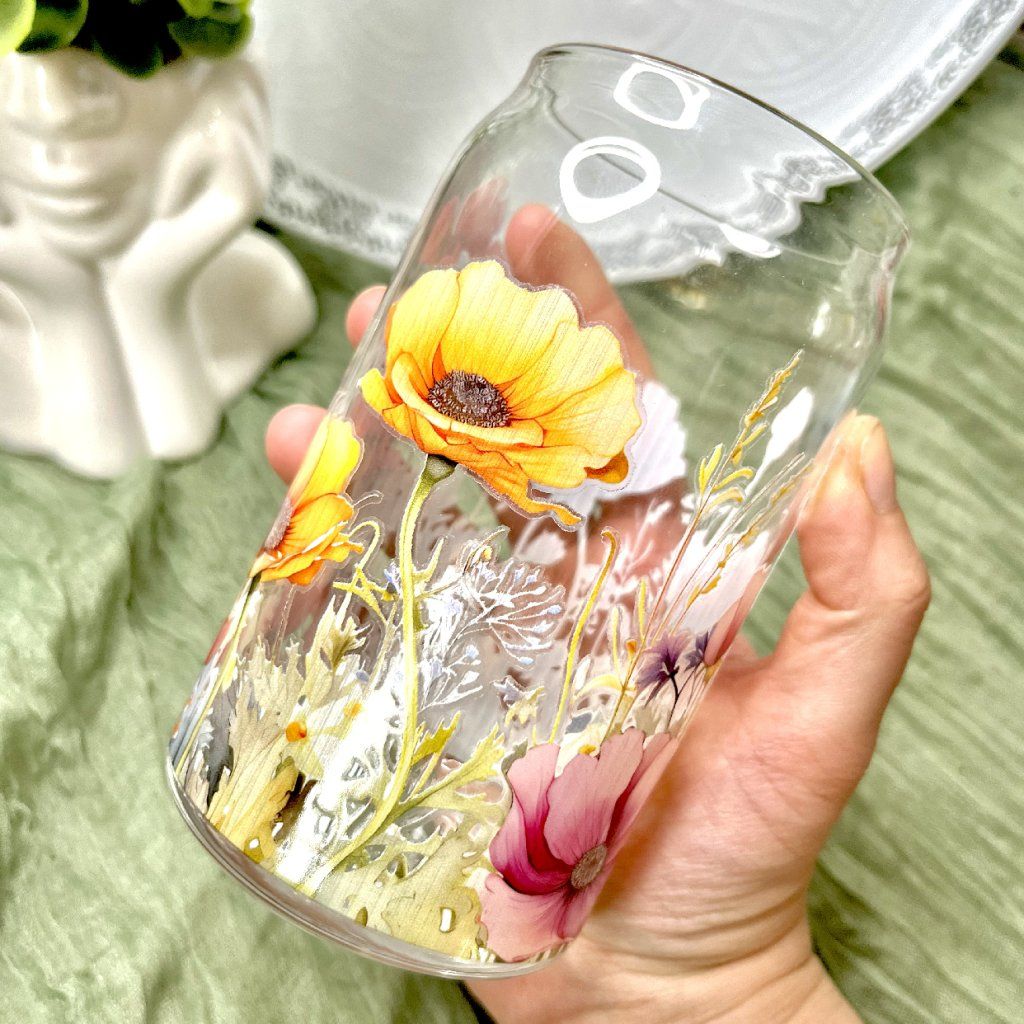 Objem 473ml - Dopřejte si chvíle pohody s nápojem ze sklenice, která připomíná rozkvetlou letní louku.