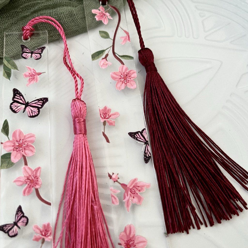Plexi záložka se střapcem a květinovým designem - perfektní spojení krásy a praktičnosti.