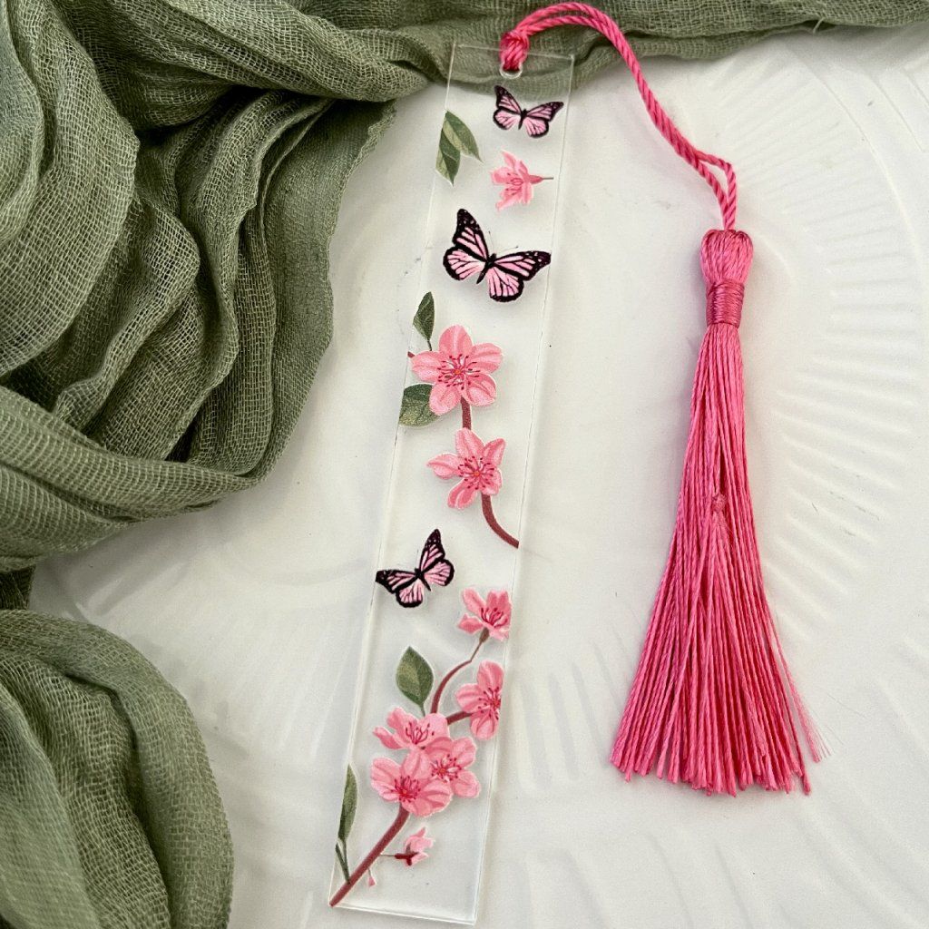 Vneste do svého čtení jemnost a styl. Tyto originální záložky z průhledného plexi zdobí něžné květiny a motýlci, které působí lehce, vzdušně a zároveň elegantně. Každý detail je pečlivě zpracovaný pomocí kvalitního UV DTF polepu, díky kterému motiv vynikne a vydrží krásný i při každodenním používání.